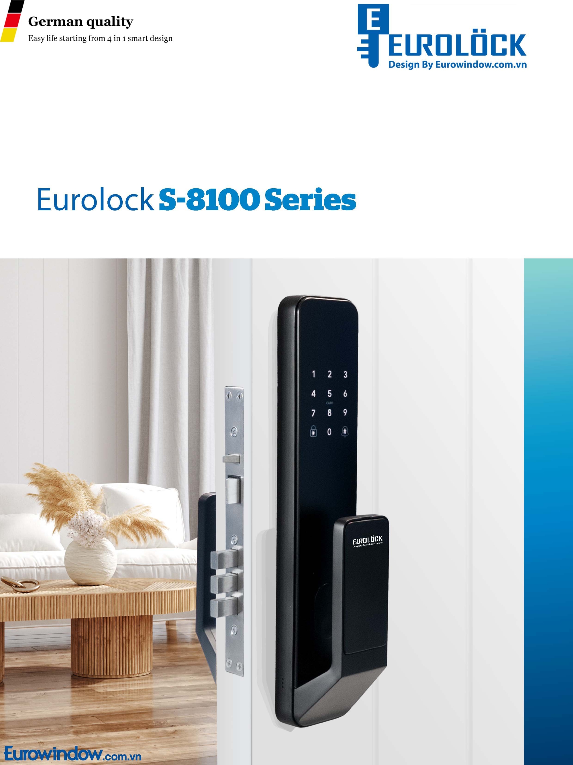Eurolock là thương hiệu thuộc Eurowindow, chuyên cung cấp khoá thông minh tiêu chuẩn châu Âu. Sản phẩm có độ bền cao, cảm biến nhạy và thiết kế sang trọng phù hợp mọi không gian.