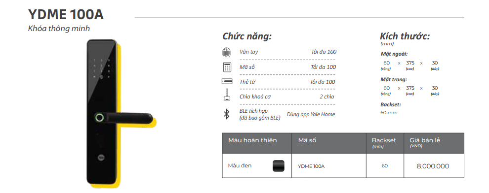 Với cấu hình này, YALE YDME 100A đáp ứng tốt nhu cầu sử dụng cơ bản đến nâng cao.